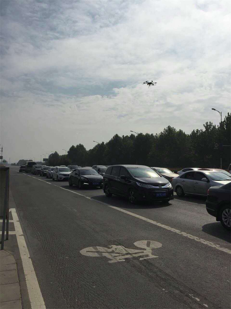 10月1日早上9點左右,智璟科技(JTT)相關技術人員和飛手來到河南省鄭州市某路段開始調試警用無人機T60,為鄭州交警使用T60進行交通疏導任務做準備。