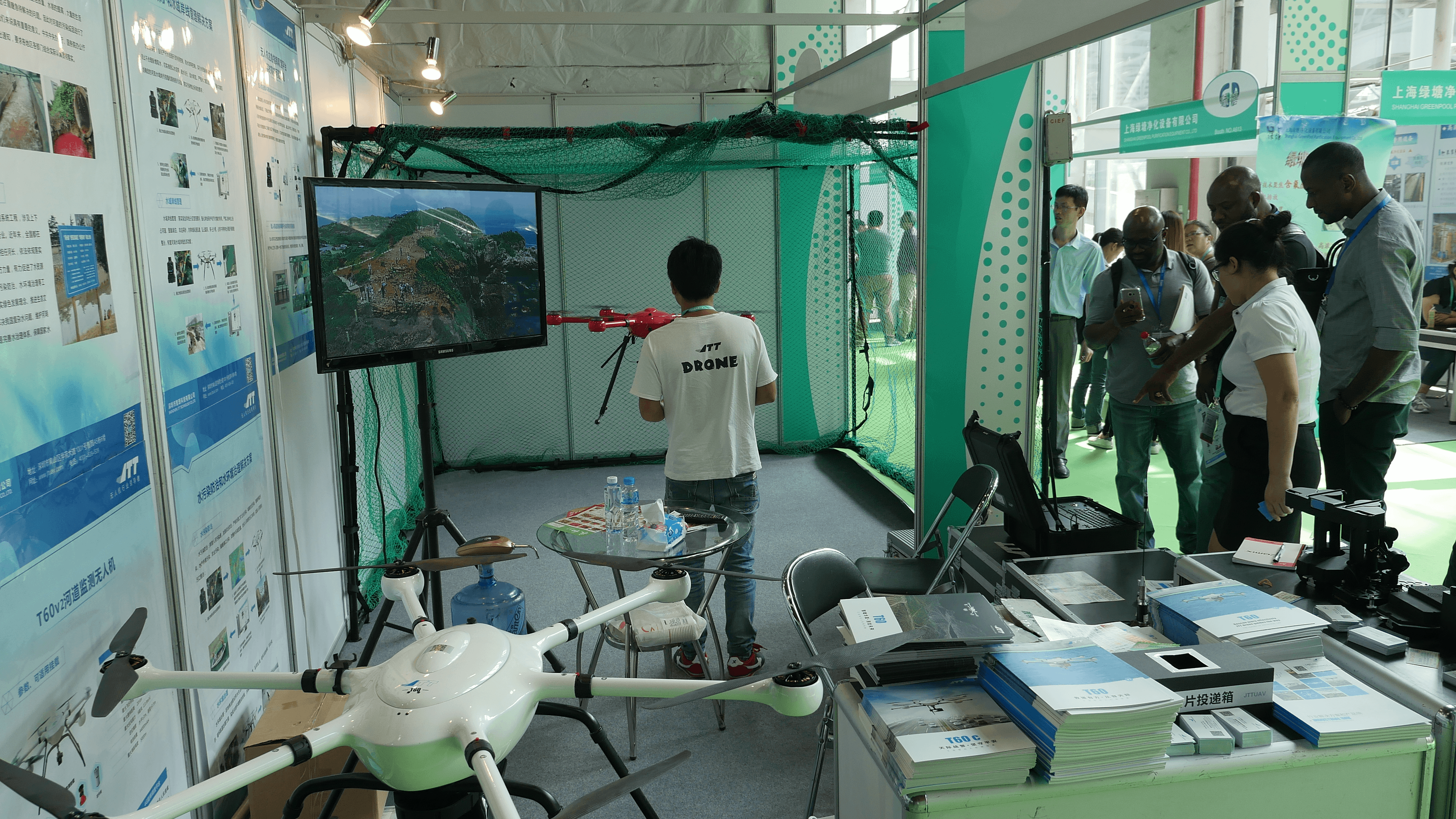 展會上人頭攢動,來自各地的觀展人員無一不被眼前的高科技產品吸引,紛紛駐足觀看,JTT的代表人員耐心的為前來咨詢的觀眾解疑釋惑,與此同時,還為大家演示無人機飛行表演。作為有擔當的企業,JTT自覺地承擔起了環境保護的責任和義務,為我國的“綠色”崛起做出了重要貢獻。