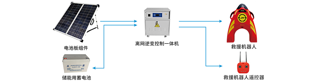 通過電池板組件收集太陽能,隨后通過一體機進行光電轉換,給予救援機器人可持續的電能,也帶來便利性、低成本、環保的優勢。