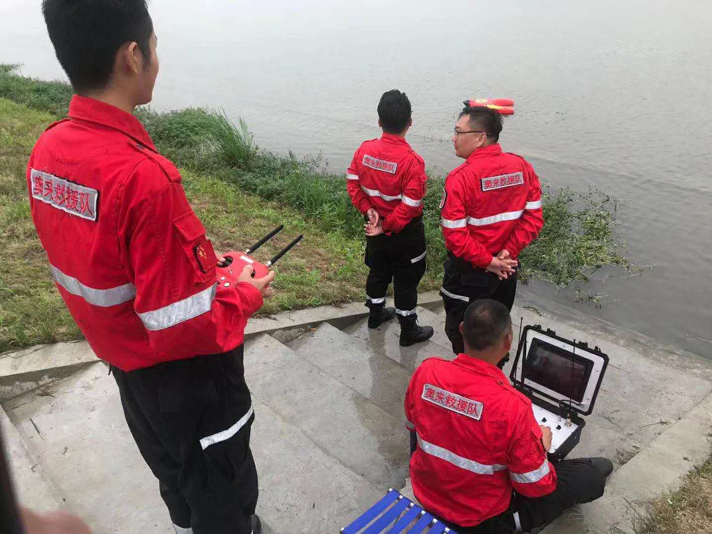 R1水上救援機器人作為搶險救援演習項目的主力軍,參與到項目當中。而整個演習由江蘇服務中心、總部研發人員等組成救援小組執行。