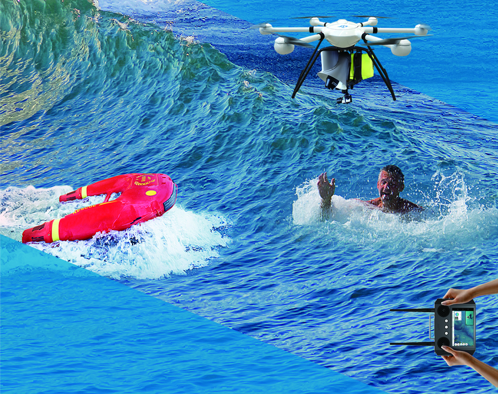 - 飛行救生圈FR01:14m/s疾速(是救生艇3倍),IP68防水抗浪,1.3km超視距投送,10分鐘抵達溺水者身邊。