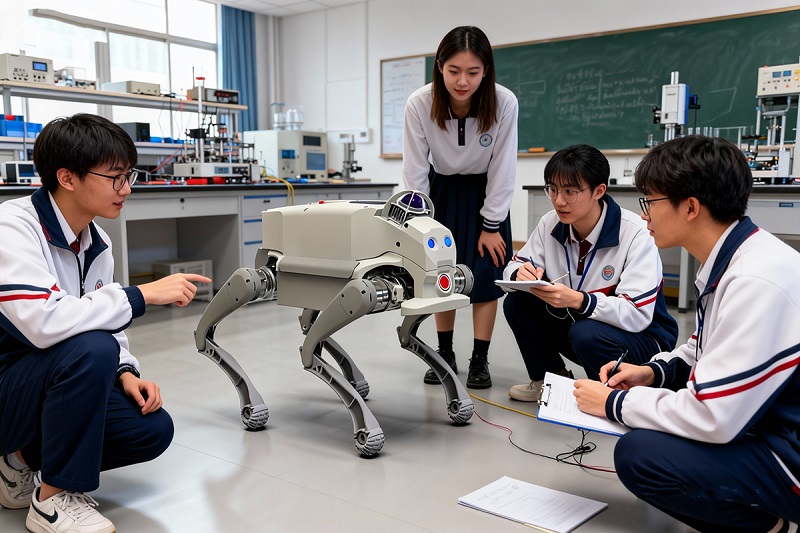 在院校科研中,ZJ104-410可作為機器人工程、人工智能、控制科學與工程等專業的理想實驗平臺。其采用的四足仿生結構和高精度伺服電機系統,為學生提供了學習運動控制、步態規劃與動態平衡算法的實體載體。學生可通過編程實現機器狗的基本行走、奔跑、越障乃至復雜地形適應,從而深入理解機器人運動學與動力學的實際應用。